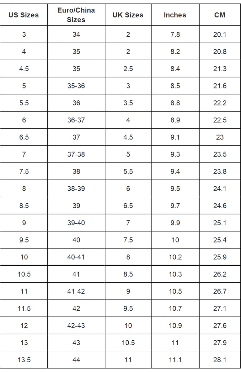 If you confuse about the size of shoes,here you can know what size shoes you need to chose when you order!!